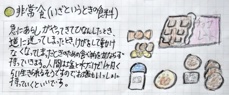 - 非常食|カロリーメイトなど。使わないのが理想ですが、必ず持つ。