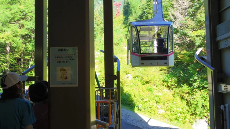 長野県まで車で移動し、バスに乗り継いでロープウェイの「しらび平」駅へ。ロープウェイに乗ると、眼下の緑がみるみる遠ざかり、7分ほどで千畳敷カールの駅に到着しました。