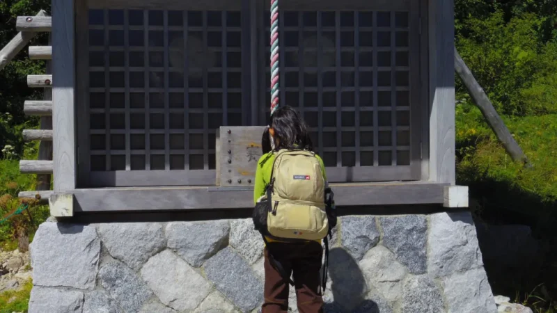 まず登山ポストに計画書を投函。それから1時間、高度順応のために休憩します。急に標高が上がると、頭痛や息切れが起きやすくなるからです。神社で山の神様に旅の安全をお願いして、いよいよ出発です。