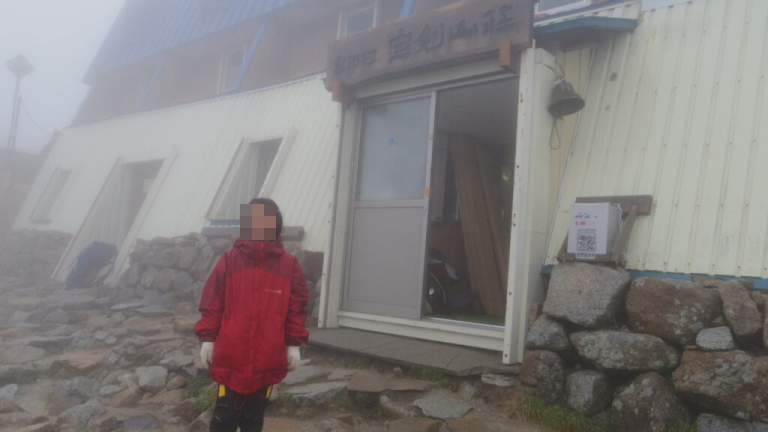 なんとか宝剣山荘に到着。「牛乳みたいな霧」の中に突然、山小屋の壁が現れてびっくりしました。それくらい何も見えていませんでした。中に入るとストーブが燃えていて、登山客が何人かいました。「この先どうですか」と聞かれたので、「やめたほうがいいです」と力説しました。